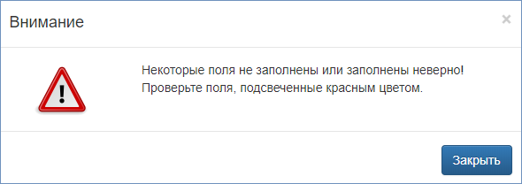 Если на форме присутствуют ошибки, то соответствующие поля будут подсвечены красным цветом, а также будет выведено соответствующее предупреждение (рис. 15). При наведении мышкой на такие поля будет указано, что конкретно не так.